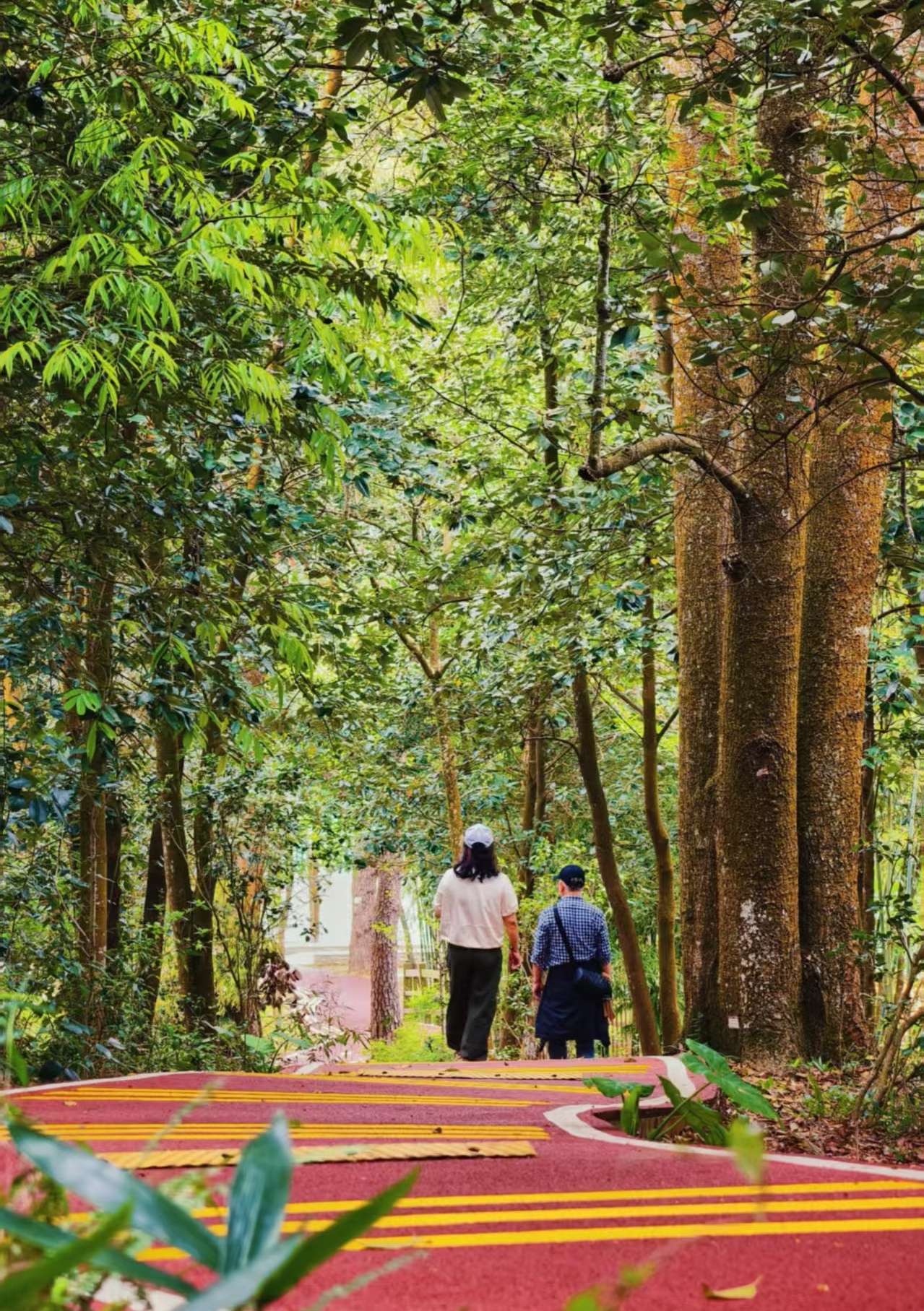 此次步道改造以“多彩森林”为理念,沿线配置了数十种观赏植物,形成四季皆景的生态景观带。